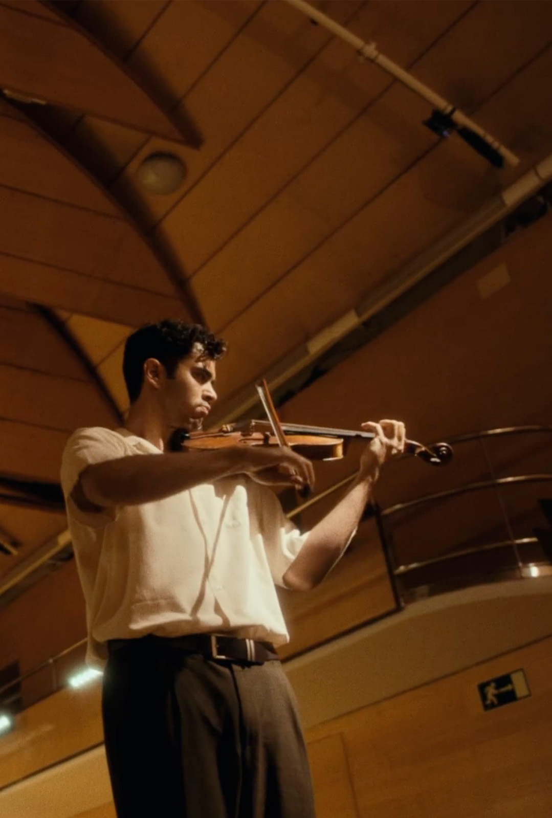 Un músico de orquesta ensaya en un auditorio de manera obsesiva una pieza muy complicada.